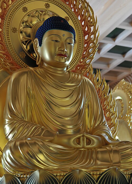 Amitabha Buddha (Sanskrit: अमिताभ, Amitābha), meaning Buddha of Infinite Light, also known as Buddha of Infinite Life (Sanskrit: अमितायूस्, Amitāyus), is also called Buddha of Infinite Purity, King of Avalokiteshvara Buddha, and Tathagata of Attaining the Pure Nature of Self-Nature. In Chinese-speaking regions, he is commonly referred to as Amitabha Buddha or Amitabha. In Mahayana Buddhism, he is the lord of the Western Pure Land of Ultimate Bliss.
