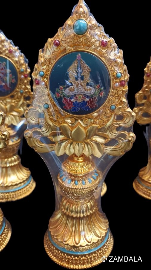 7. Victory Banner (རྒྱལ་མཚན་): It symbolizes victory and achievement, and represents that practitioners can overcome troubles and attain ultimate wisdom.