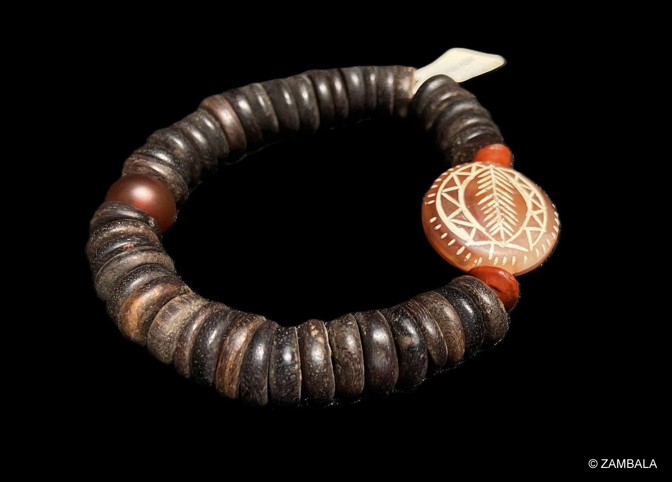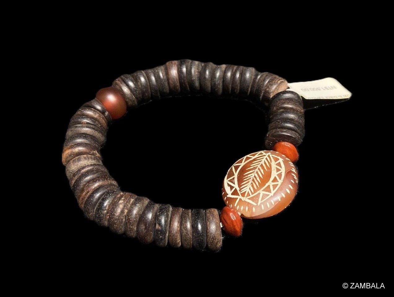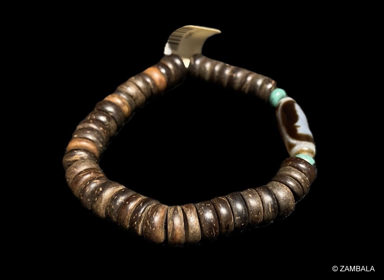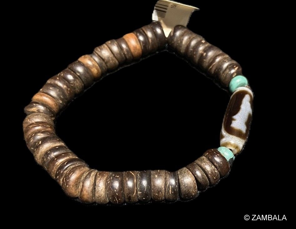 | Material: Dzi Ebony BraceletSize: Inner diameter about 5cmDescription:In Tibetan Buddhism, **ebony bracelet** is a commonly used prayer beads (Tibetan: ཕྲེང་བ།, transliterated as "trengwa") or practice tools, with important religious and cultural significance. It is not only a tool for practice, but also carries symbolic and spiritual value. The following is an overview of the meaning and origin of ebony bracelets in Tibetan Buddhism: **Meaning**1. **Practice Auxiliary Tools**:- **Mantra Counting**: Ebony bracelets are mainly used for counting when chanting Buddha's name, mantras (such as the six-syllable mantra "Om Mani Padme Hum") or scriptures. Prayers usually have 108 beads, representing 108 kinds of troubles. Chanting once can purify karma and accumulate merits.- **Focus on mindfulness**: Moving the rosary helps practitioners stay focused and enter a state of meditation or dhyana, reminding practitioners to always maintain mindfulness and compassion. 2. **Symbolizes purity and firmness**: - **Characteristics of ebony**: Ebony is hard, dark, and exudes a natural fragrance. It is believed to have the energy of purity and evil spirits in Tibetan Buddhism. Its black color symbolizes deep wisdom and stable power, which can help practitioners resist external interference and purify their hearts. - **Spiritual blessing**: Ebony bracelets are often consecrated or blessed by high monks to enhance their spiritual power. When worn or used, they can bring protection and blessings. 3. **Cultural and identity symbols**: - Ebony bracelets are not only a tool for practice, but also an identity symbol for Tibetan Buddhists. Whether monks or lay people, wearing or holding rosary beads reflects their piety and commitment to Buddhism. - Bracelets are often used as personal items for ceremonies, pilgrimages, or daily practice, and are closely linked to the religious life in Tibetan culture. 4. **Evil-repelling and protection**:- Tibetan Buddhism believes that ebony has a natural evil-repelling and calming effect. Wearing an ebony bracelet can protect the wearer from negative energy or spiritual interference, especially in long-distance pilgrimages or dangerous environments. **Origin**1. **Origin of rosary**:- The tradition of rosary beads originated from ancient Indian Buddhism and became popular around the 2nd century BC. After Buddhism was introduced to Tibet, rosary beads became an important tool for Tibetan Buddhist practice, used for Tantric mantras and exoteric Buddhist chanting.- The design of 108 beads originated from the cosmology of Hinduism and Buddhism, representing 108 kinds of troubles, 108 Buddhas or 108 phenomena in the universe. Tibetan Buddhism has adopted this tradition and integrated local characteristics. 2. **Selection of ebony**:- **Material background**: Ebony (scientific name: Diospyros ebenum) is mainly produced in India, Southeast Asia and other places. Because of its hardness, durability and unique black luster, it has been regarded as a precious wood since ancient times. In Tibetan Buddhism, ebony is often used to make prayer beads, Buddha statues or ritual implements because of its rarity and stability.- **Cultural introduction**: As Buddhism spread from India to Tibet, the materials used to make prayer beads gradually diversified. Ebony has become one of the favorite choices of Tibetan monks and believers because of its texture and symbolic meaning, especially when making high-quality prayer beads. 3. **Production and blessing**:- The production of ebony bracelets requires the selection of high-quality wood, which is hand-polished into beads and strung with silk threads or metal accessories. It is often paired with auspicious ornaments such as dzi beads, corals or turquoise to add beauty and spirituality.- After the production is completed, the bracelets are usually consecrated by monks or lamas, chanting and blessing, making them holy objects with spiritual power. Some bracelets are also engraved with mantras or Buddha statues to enhance their religious significance. 4. **History and popularity**:- The popularity of ebony bracelets is closely related to the spread of Tibetan Buddhism. Since the Tubo period (7th-9th century), Tibetan Buddhism has gradually formed a unique style, and prayer beads have become a practice tool used by monks and laymen.- As Tibetan Buddhism spread to Mongolia, Han and the West, ebony bracelets have become popular not only as religious items, but also as collectibles or ornaments due to their beauty and cultural value. **Usage and cultural influence**- **Daily use**: Tibetan Buddhists use ebony bracelets when chanting, praying or meditating, and some believers also wear them on their wrists or necks as sacred objects to protect themselves and remind them to practice.- **Prayers and pilgrimages**: In ceremonies or pilgrimages (such as turning the prayer wheel and circumambulating the pagoda), ebony bracelets are common carry-on items, and believers accumulate merits by chanting and moving beads.- **Art and modern applications**: Ebony bracelets are commonly seen in Tibetan thangkas, temple decorations and personal accessories, reflecting the craftsmanship aesthetics of Tibetan Buddhism. Modern people use them as accessories that combine faith and fashion. **Summary**Ebony bracelets are an important symbol of practice and spirituality in Tibetan Buddhism. They are used as prayer beads to chant mantras and count, helping practitioners purify their body and mind and accumulate merits. Their deep black color and hard texture symbolize wisdom, purity and protection, and are deeply loved by Tibetan Buddhists. Their origin can be traced back to the prayer beads tradition of ancient Indian Buddhism. Combining Tibetan culture with the unique properties of ebony, they have become sacred objects with religious, cultural and artistic values. Through consecration and daily use, ebony bracelets are not only practical practice tool