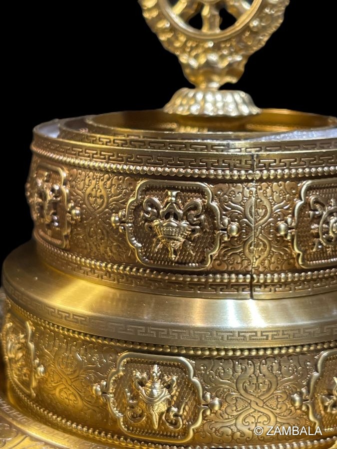 - **Microcosm of the Universe**: The mandala plate represents the complete structure of the universe. Offering a mandala plate is equivalent to dedicating all beauty to the Dharma, embodying selflessness and generosity.