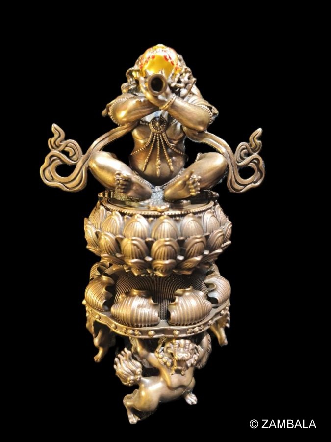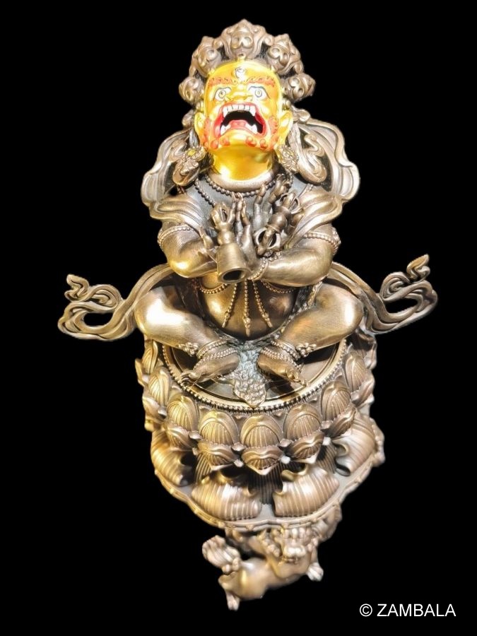 Its name, "Nengshang," derives from the Tibetan words "Za" (to devour) and "Jed" (to impure), emphasizing its ability to devour impurities. "Vajra" represents its indestructible and sturdy wisdom body. In Tibetan Buddhist texts such as the Mahavairocana Sutra Commentary, it is considered the male counterpart of the Dakini (Yangfu), belonging to the category of "Dharmapala," with connections to the wrathful manifestations of Avalokitesvara or Manjushri. Its origins are often traced to the craft traditions of the Nepal-Tibet border. It is often cast in lost wax or gilded bronze, commanding high prices (several thousand to tens of thousands of RMB), symbolizing its sacredness.