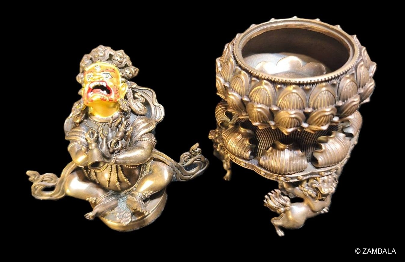 2. The Core of Fire Offerings: Vajrabhairava is most commonly used as a "Homa censer," a fire offering incense burner. This reflects its dual nature: the upper portion is the vajra image, and the lower portion is the censer. During the ritual, charcoal is placed in the buddha's "belly," and sesame seeds, grains, or mantras, symbolizing black karma, are placed in the buddha's belly. As the fire burns, smoke escapes from the buddha's nostrils or ears, symbolizing the complete burning of afflictions by the fire of wisdom. Volume 20 of the Great Sun Sutra Commentary states, "Homa is the burning of the firewood of afflictions with the fire of wisdom, completely consuming them." This is not only a preliminary to a small fire offering, but is also used in a broader sense for performing Homa rituals, such as liberating the deceased, praying for blessings and dispelling disasters, and subduing demonic forces.
