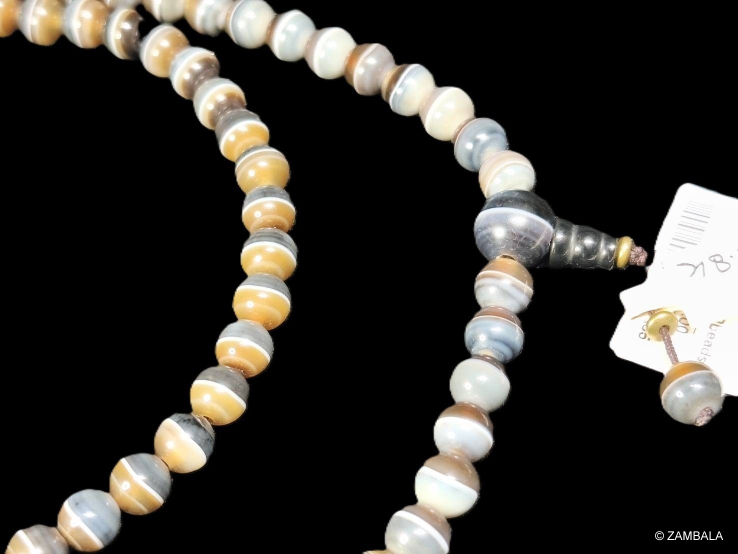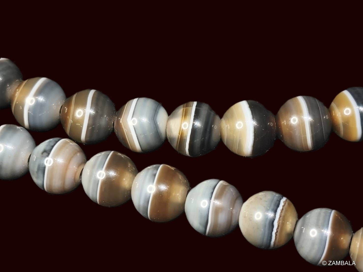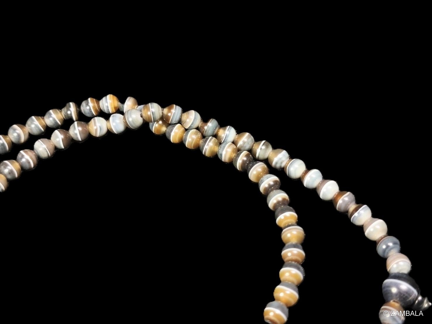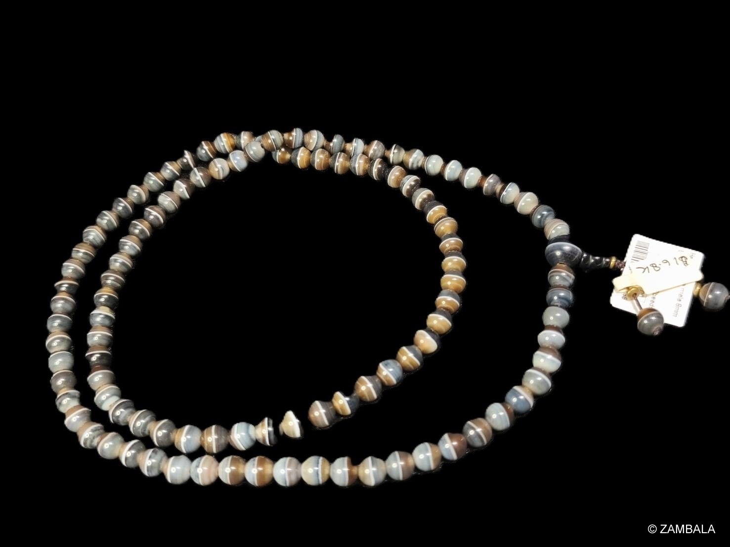 Influence on Buddhism: In Buddhism, prayer beads (also known as rosaries or rosaries) are important tools for counting mantras, helping practitioners focus their minds and overcome afflictions. A typical rosary has 108 beads, symbolizing the 108 kinds of worldly afflictions or delusions. Agate prayer beads not only inherit this tradition but also gain spiritual significance due to agate's gemstone properties: it is considered a grounding stone, capable of balancing emotional, physical, and intellectual energies, bringing benefits such as protection, courage, abundance, and longevity. Certain types of agate, such as Sulemani agate (also known as Babagoria), are associated with Bhaisajyaguru (the Medicine Buddha) in Mahayana Buddhism and are believed to cure diseases, prolong life, and promote vitality. This has made agate prayer beads popular in Buddhist practice, especially in Tibetan Buddhism and Zen, where they are used for meditation and energy purification, influencing the daily spiritual practices of Buddhists.