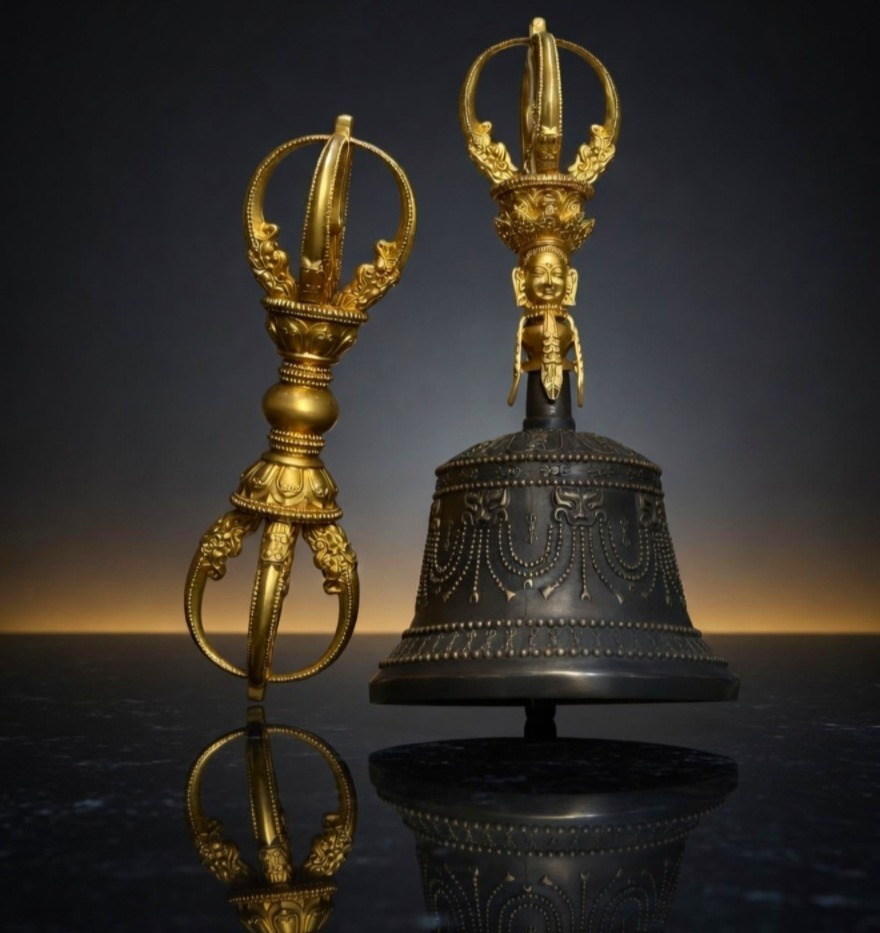 The vajra represents power and wisdom, the bell represents emptiness and awakening; their union signifies complete enlightenment.