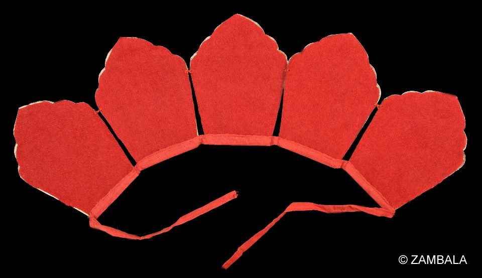 According to records, the shape of the Five-Direction Buddha Crown is a five-petal lotus, each petal is decorated with patterns such as swords, lotus, vajra, treasure wheel, flame, etc., symbolizing the wisdom and merits of the Five-Direction Buddha. There is a long tassel hanging below to add solemnity. Its design inspiration comes from the rituals and classics of Indian Tantric Buddhism, especially the description of the Five-Direction Buddha in Tantric classics such as the Vajra Peak Sutra. Later, it gradually evolved into one of the important instruments in Tibet.