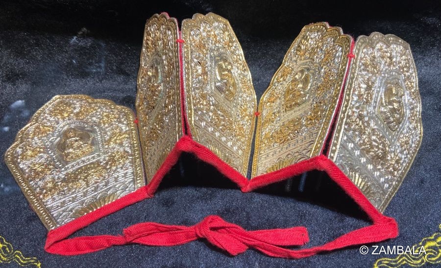4. **Production and Offering**: The production of the Five-Direction Buddha Crown must follow strict rituals, use precious materials such as gold, silver, and gems, and be made by craftsmen with Tantric heritage. Believers offer the Five-Direction Buddha Crown to eminent monks or temples, which is considered a special act of accumulating merit.