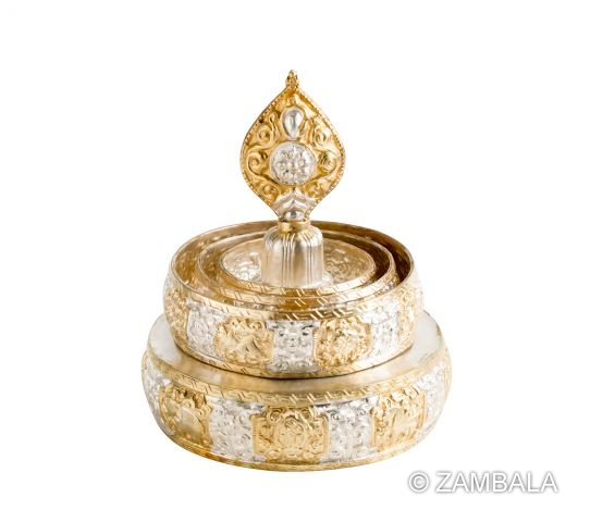 The mandala plate is mainly an offering instrument for the Tibetan Vajrayana Tantric Dharma. It is used to quickly gather the Buddha's material path and increase the merits and wisdom of the world. Generally, it is usually fixed on the mandala. During the Dharma meeting or when practicing the four preliminaries, the mandala offering method can be performed. The mandala is usually equipped with seven treasures and eight treasures, various jewelry, treasures or rice for the guru, Buddhas, Bodhisattvas, deities, protectors, dakinis and their families. The merits of this offering can quickly accumulate wealth and blessings, making the practice of Dharma smooth and hassle-free. Dedicate all sentient beings in the Dharma Realm to receive blessings and empowerments from Buddhas and Bodhisattvas, and receive blessings and empowerments. Together, we can gain merits and benefits, eliminate karmic obstacles, and achieve happiness. Wisdom growth is a commonly used instrument for those who practice tantric dharma.