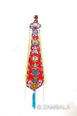 The earliest origins can be traced back to the Tantric tradition of India from the 8th to 12th centuries. Indian yogis and accomplished masters (Mahasidi) would bind victory banners to ritual implements such as hand drums and bone horns during practice, signifying "attainment of accomplishment and the shunning of demons." In Tibet, it is called "Jeda" (rgyal mtshan, victory banner).
