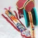 Material: Black altar wood drum body. Tassels tied with hand rope. Embroidered drum cover.