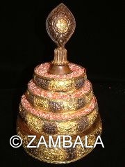 The Mandala plate is usually composed of multiple layers of tower boxes and spiral tops. Each layer of the tower box is hollow and can be filled with offerings such as gold, silver, gems, and grain. When performing the ritual, practitioners chant mantras while scattering offerings into the mandala plate, stacking them layer by layer to the top of the conch, symbolizing the wish for good fortune and happiness.