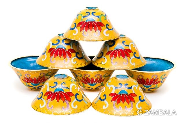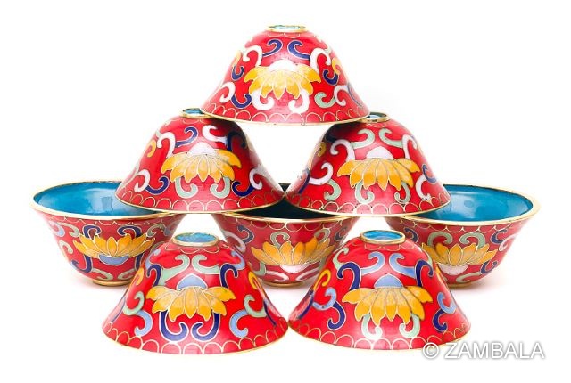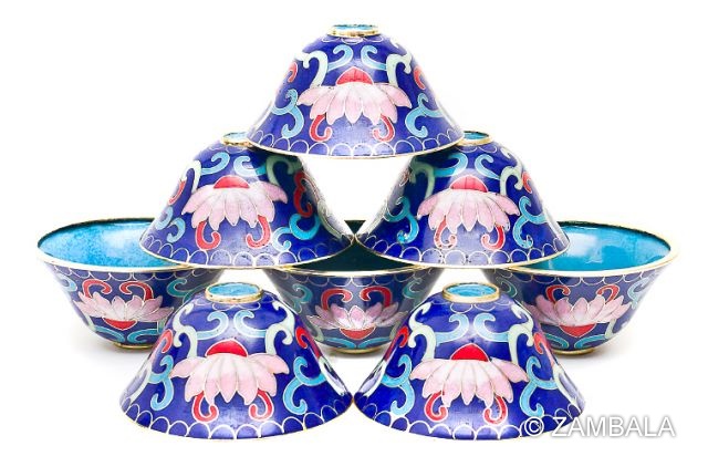 Materials: Set of Eight Small Cloisonné Offering Cups