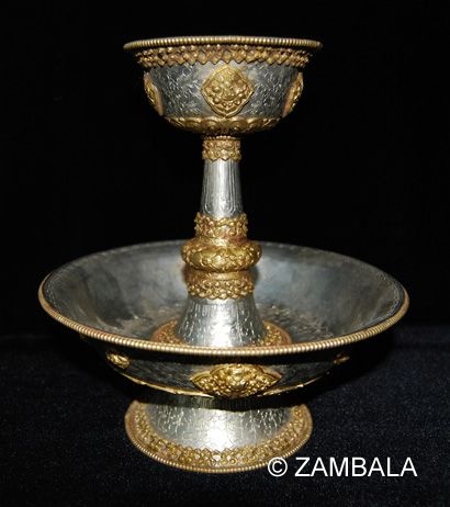 - The offering cup is usually a small container made of metal (such as copper, silver) or ceramics, mostly in the shape of a bowl or cup, with a simple design but sometimes engraved with auspicious patterns or mantras.