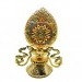 - **Applications in Temples and Art**: The Dharma Wheel is often found in temple architecture, for example, on roofs or doors, sandwiched between a male and female deer. It symbolizes the stages of Highest Yoga Tantra: the male deer represents Great Bliss, the female deer represents Emptiness, and the Dharma Wheel symbolizes the union of these two, leading to the Five Wisdoms of the Buddha. At sacred sites such as Jokhang Monastery in Tibet, statues or murals of the Dharma Wheel serve as decorative ornaments, and devotees circumambulate or worship them as guardians of the teachings. The Dharma wheel atop a temple stupa sometimes contains scriptures, symbolizing the wheel's rotation and the spread of the sacred teachings.
