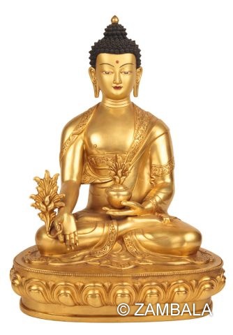 15" Height Medicine Buddha fully gold plated on copper. (Gilt Copper