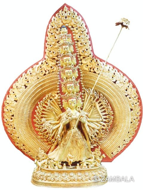 There is a famous story about her origin: Although the Asuras in the six realms have good fortune, they often conflict with the heavens because of their strong anger. There is a wish-fulfilling tree between the heaven and the Asura realm. The heavenly beings can have their wishes fulfilled when they pray to it. This makes the Asuras jealous, so they lead their people to attack the heaven. In desperation, Indra turned to Sakyamuni Buddha for help. The Buddha then transformed himself into White Umbrella Goddess, holding a huge white umbrella, and recited the White Umbrella Dharani, which frightened the Asuras and they fled. The war was thus settled.