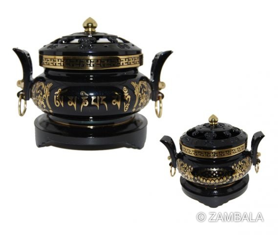 Om mani mantra incense burner with handles. Can be used to burn powder or coil incense