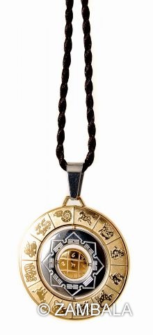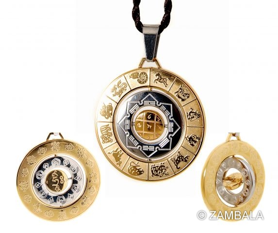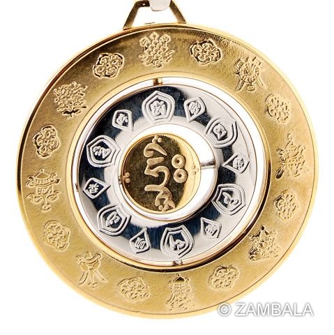 Protection Mandala has one side with Ba-Gua and the animal zodiac signs; and the other side has the 8 Auspicious Symbols and the Om Mani Mantra. The three components can spin to change the arrangement.