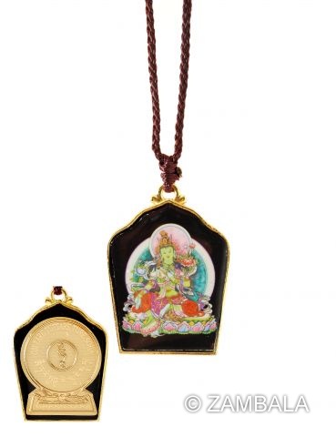 Painted Green Tara with gold plated mantra and seed syllable.