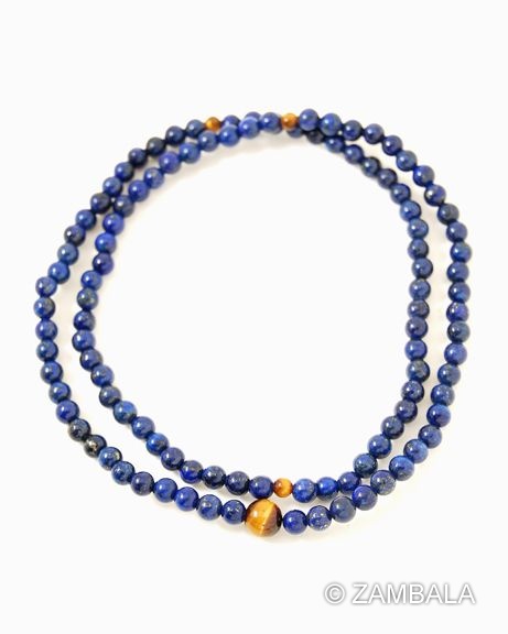 Lapis Lazuli 4mm mala has 108 beads with elastic string. Guru beads and spacers are tiger eyes stones.