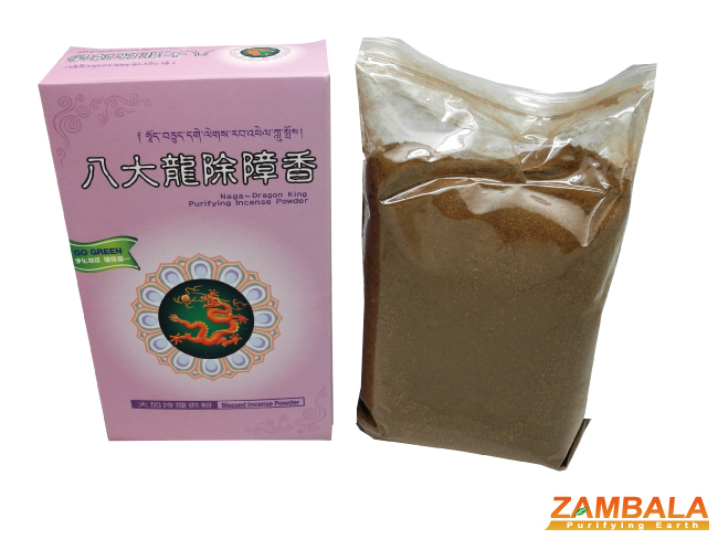 Nagas are the local guardians of the elements and reside in oceans, lakes and waterways. Nagas are also wealth deities. Our relationship with them becomes unbalanced if we are negligent or destructive in how we treat our environment. Treating nature poorly often results in natural disasters like earthquakes , tornadoes, tsunamis, droughts, and flooding. Daily offerings pacify Nagas so they can be more helpful in our endeavors and good fortunes. The scent of this incense is like that of wild plants on a Himalayan lakeshore. For the creation of this special incense a “mother” blend of sacred substances is gathered and rolled into small blessing pills called “mendrup”. These sacred pills, blessed by many realized Tibetan masters, are combined with other rare herbal, medicinal, and precious mineral ingredients to produce high quality Tibetan incense that carries many profound blessings.