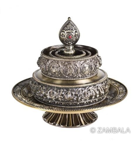 The Mandala Plate is an important offering vessel in Tibetan Buddhism. Its origin and story are full of profound religious significance and cultural background.