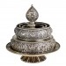 **Origin of the Mandala Plate** The name "Mandala Plate" originates from the Sanskrit word "mandala," meaning "altar" or "perfection." Initially, the concept of the mandala originated with Indian Tantric practitioners who used materials such as sand, rice, and flowers to draw mandala patterns on the ground as a foundation and support for their rituals. With the introduction of Tantric Buddhism to Tibet, the form of the mandala plate gradually evolved into a three-dimensional stupa shape, and was made using materials such as metal and jewels to enhance its beauty and solemnity.