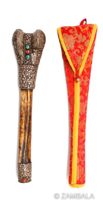 **Material Standards**: Traditionally, human leg bones (primarily thigh bones) are used. The best are the left leg bones of 16-year-old Brahman virgins (which possess the greatest power to control spirits); the second-best are the right leg bones of teenagers of the same age. The potency decreases with the type of deceased: victims, those killed in battle (who possess a violent nature), women with difficult childbirth (who harbor deep resentment and may have lost two lives), and those who died from viruses can all be used; the elderly who died of natural causes have the weakest potency. Occasionally, tiger leg bones are used as a substitute to enhance their ferocious power. The bones must meet specific requirements: the two ends must be of different heights or sizes (the right side represents a deity, the left side represents a ghost, with the deity higher and the ghost lower to generate commands); a wide platform at the bottom (the stage for the Dakini); a protruding bone point on the inside (the sword of wisdom); and a natural cave nearby (the Dakini's abode). Those over a hundred years old and meeting all these requirements are considered rare.