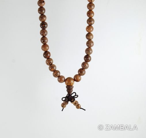Each bead is 8 mm. Saga Tree Wood, also known as chicken wing wood, has been traditionally used for Chinese royalty. The term "chicken wing wood" refers to the wood's natural grain.
