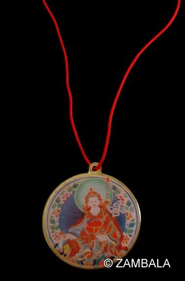 Guru Padmasambhava on the front and his mantra on the back of the pendant. Size: d=1.25inch