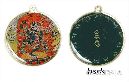 Singhamukha on the front, with deity's mantra on the back of the pendant. Size: d=1.25inch