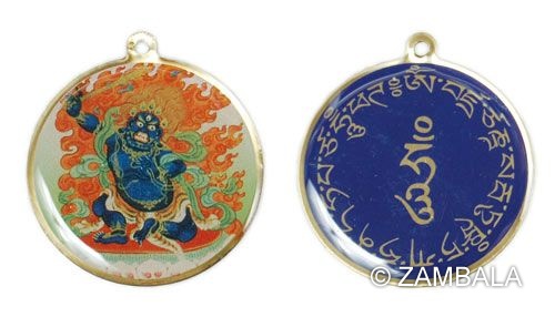 Hayagrīva on the front, with mantra on the back of the pendant. Size: d=1.25inch