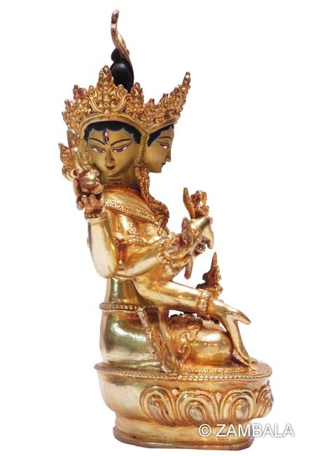 This Namgyalma statue is gully gilt copper with face painted by gold. handmade in nepal