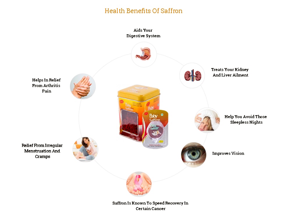 t helps in relieving inflammation of arthritis. Saffron also provides relief from joint pains. It is very helpful for athletes as it eases fatigue and muscle inflammation by helping the tissues to get rid of lactic acid which gets built up after strenuous exercise.