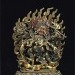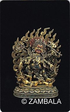 The correct name is "The Protector Who Purifies All Obstacles and Difficult to Rely on", and he is the incarnation of the Thousand-armed, Thousand-eyed, Eleven-faced Avalokitesvara. The body appears black and blue, which represents the immovable nature of the Dharmakaya. The three eyes represent the understanding of everything in the three periods of time and the manifestation of the three bodies of Buddha. The six arms represent paramita. The two feet represent skillfulness, convenience and wisdom. The tiger skin skirt represents the elimination of all greed. Elephant skin can purify arrogance. The God of Wealth stepping on the white elephant represents the subjugation of Vinayaka and the elimination of evil.