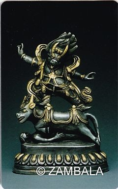 He has a human body and a bull's head. According to legend, he was an ascetic who lost his life due to unreasonable slander. The underworld put a bull's head on the ascetic's neck, and he caused harm to the Snowy Region. Later, he was subdued by Mahakala, the incarnation of Manjushri Bodhisattva, and thus became the patron saint of Tibet.