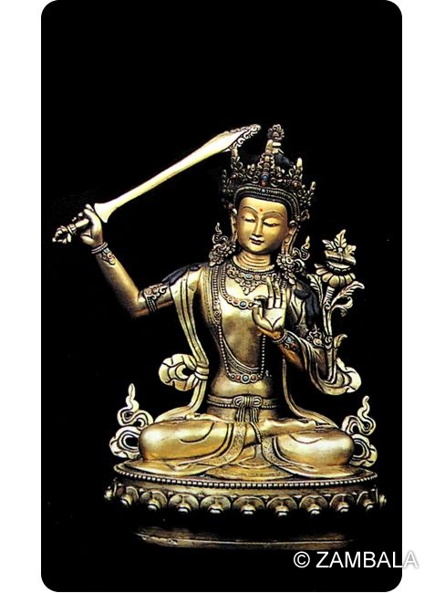 The Sanskrit name is Manjushri, which is translated as Wonderful Auspiciousness, Wonderful Sound, etc. In the exoteric teachings, he is often paired with Samantabhadra Bodhisattva, accompanying Sakyamuni Buddha and being in charge of wisdom.