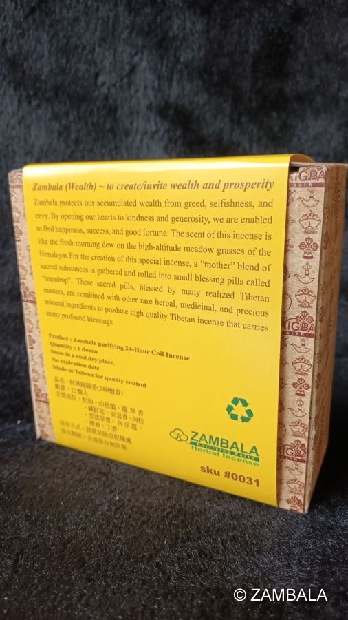 Zambala protects our accumulated wealth from greed, selfishness, and envy. By opening our hearts to kindness and generosity, we are enabled to find happiness, success, and good fortune. The scent of this incense is like the fresh morning dew on the high-altitude meadow grasses of the Himalayas.