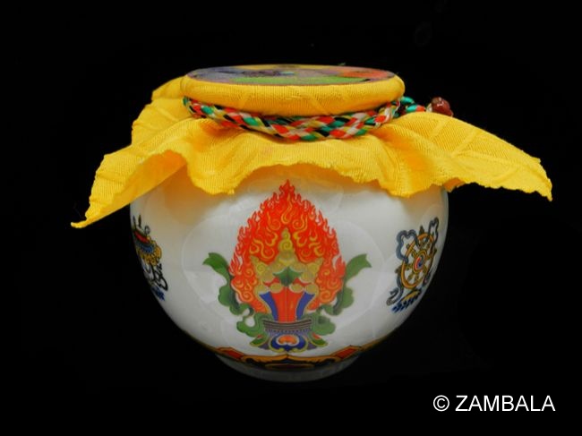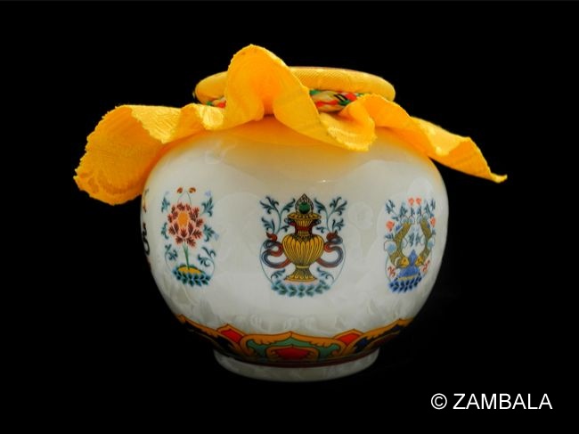 3. **Treasure Vase (Kalasha)**: Symbolizes abundance and long life, often filled with sacred nectar, representing endless blessings.