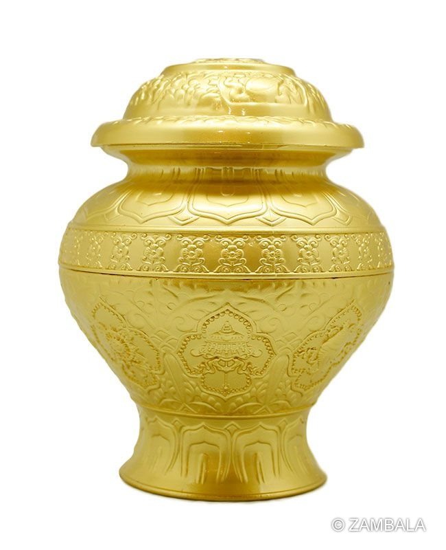 From the Qing Dynasty onwards, the treasure vase also influenced secular life, such as the "Golden Urn Lottery" system, which uses a golden urn to determine the reincarnation of a Living Buddha.