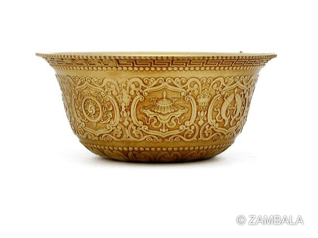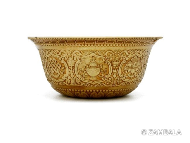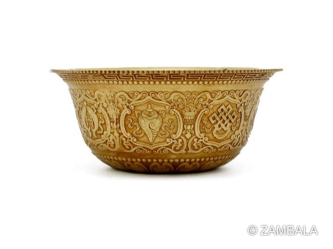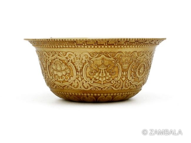 - **Eight Auspicious Symbols**: The offering cup is usually engraved with **Eight Auspicious Symbols** (treasure vase, Dharma wheel, lotus, double fish, treasure umbrella, Dharma conch, auspicious knot, victory banner), representing the perfection and blessing of Buddhism.