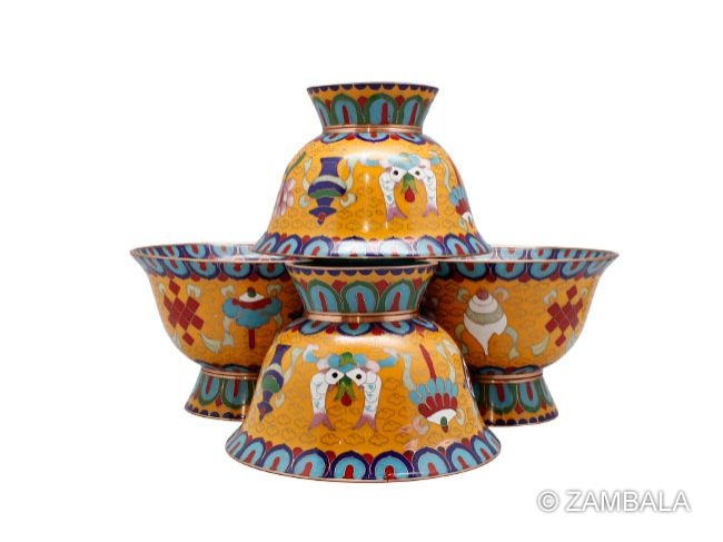 Materials: Set of Eight Cloisonné Offering Cups (Large)