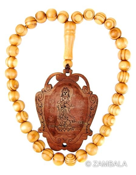It consists of 36 beads 10mm thick and a wooden Kuan Yin charm.