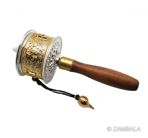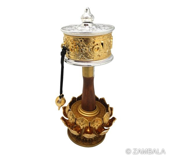 The hand-cranked prayer wheel is a very important and historical instrument in Tibetan Buddhism. The prayer wheel, also known as the "prayer cylinder", is called the "Mani prayer wheel" (མ་ནི་སྐུ་སྒྲུབ།, *mani khorlo*) in Tibetan. Its main purpose is to accumulate merit by chanting scriptures by turning the prayer wheel.