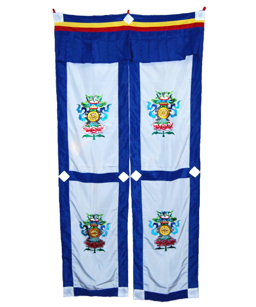 Description: The Correct Use of a Tibetan Buddhist Eight Auspicious Symbols Door Curtain
