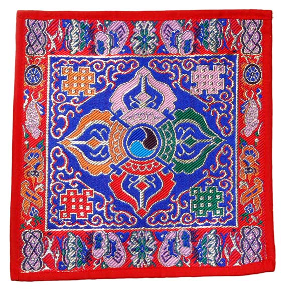 - **Influence of Tibetan Buddhism (from the 7th century)**: In Tibet, tablecloths are called "chog tsher" (Tibetan: ཆོག་མཚོན་), originating from traditional altar cloths of the Bon religion and later incorporated into Tantric Buddhism. These fabrics are mostly hand-woven and dyed, featuring designs such as mandalas, vajra, or guardian deities, and are used to create a sacred atmosphere during practice. Modern Buddhist tablecloths exported from Nepal and Tibet are often made of thick cotton, approximately 80-100cm square. They originate from the Tantric rituals introduced by Guru Padmasambhava in the 8th century.