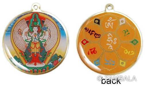 1000 Arms Avalokitesvara on the front, with the mantra on the back of the pendant.