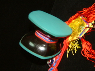 The Dharma drum (double-headed skin drum) is a musical instrument in Tibetan Buddhism. It connects with mystical powers through the vibrations of sound. The two drum heads symbolize the non-duality between appearances (conventional truth) and emptiness (ultimate truth). The drum waist symbolizes the perfect union of wisdom and method. It is often tied with a colorful ribbon, symbolizing the Five Buddhas.