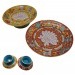 **Story of the Mandala Plate** The mandala plate symbolizes the center and edge of the universe, representing elements such as Mount Meru, the four continents, the sun, and the moon. Master Tsongkhapa (1357-1419) initially used stone slabs as mandala offerings. Later, mandala offerings were developed using materials such as gold, silver, and copper, and inlaid with jewels and jade for decoration.