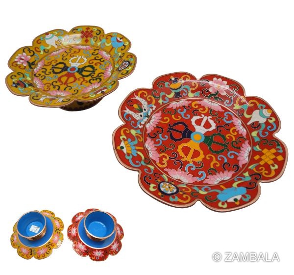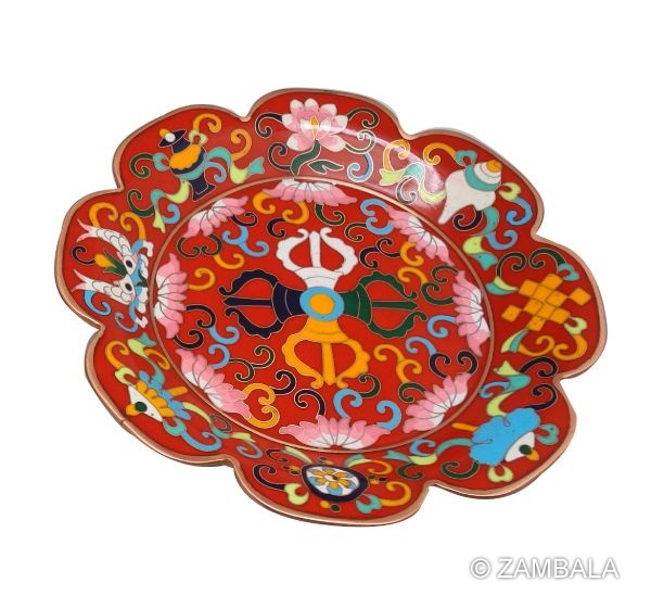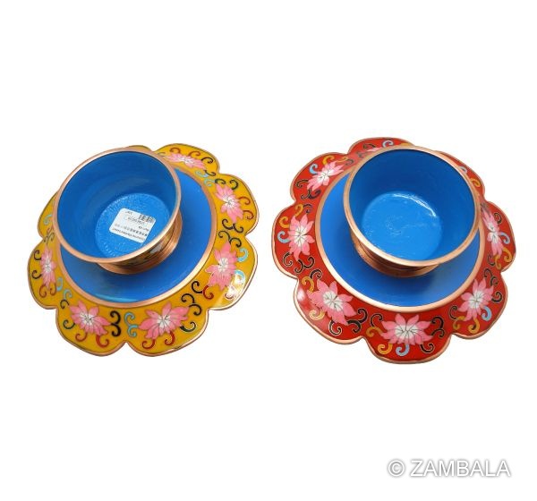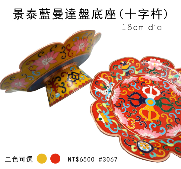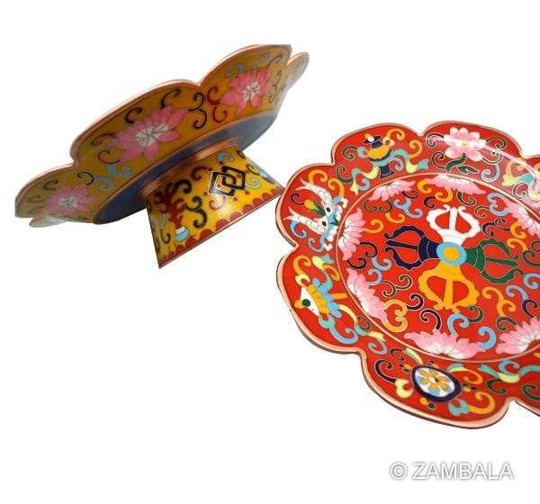| Come in two color as in the picture. This hand made Cloisonne Mandala base/dish can be used as a mandala stand or offering dish |