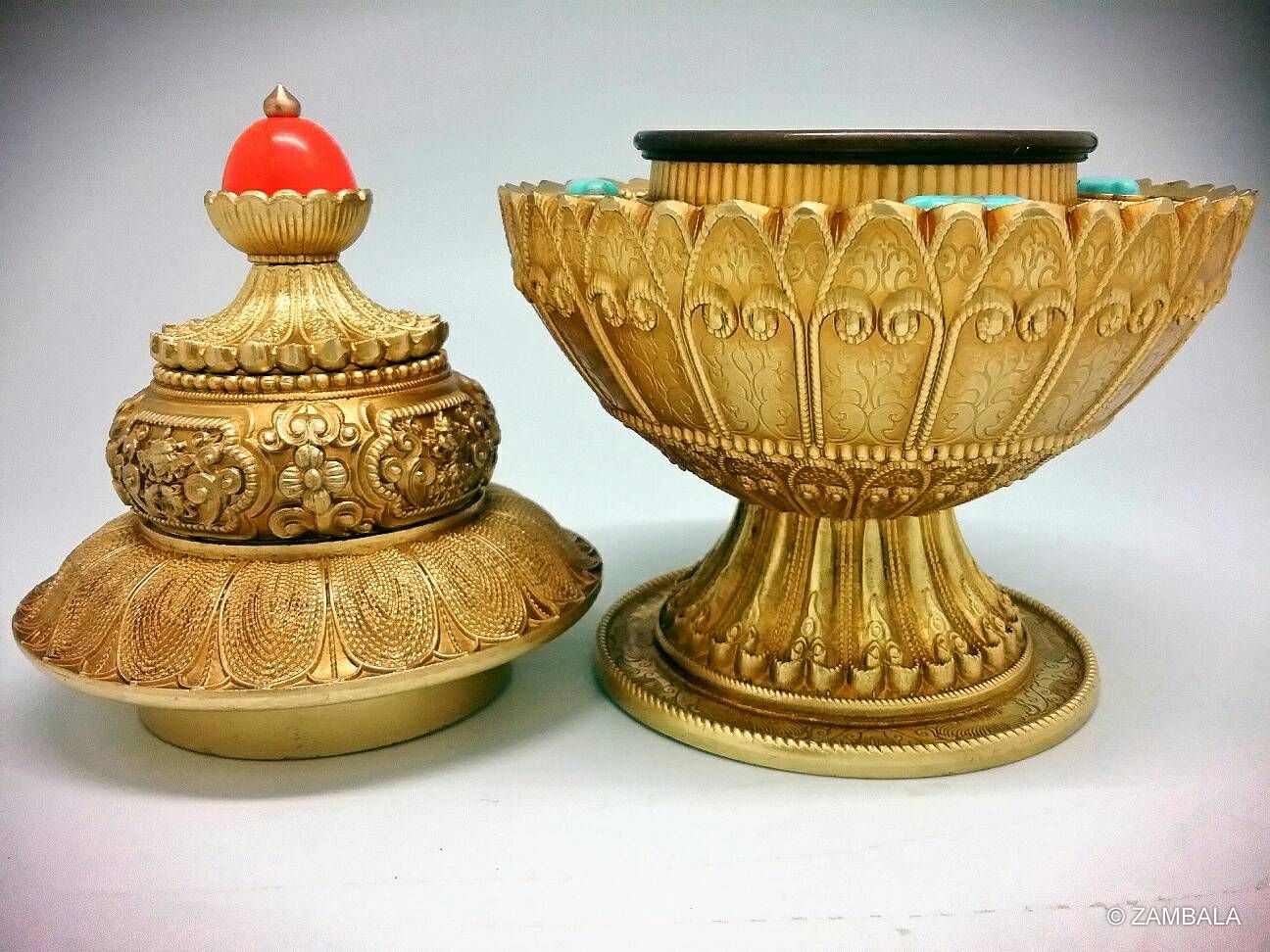 It is a round wooden container filled with various items symbolizing Buddhist teachings, such as rice, incense, flowers, jewelry, scriptures, Buddha statues, etc. The function of the Dharma Rice Jar is to help practitioners establish a connection with the Buddha in the process of Tantric practice, and accumulate merit and wisdom to achieve enlightenment.